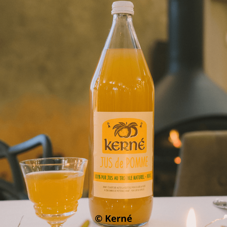 - Jus de pomme Kerné* (1L). 1 à 12 bouteilles : 5,50 € / 13 ou + : 5,25 €