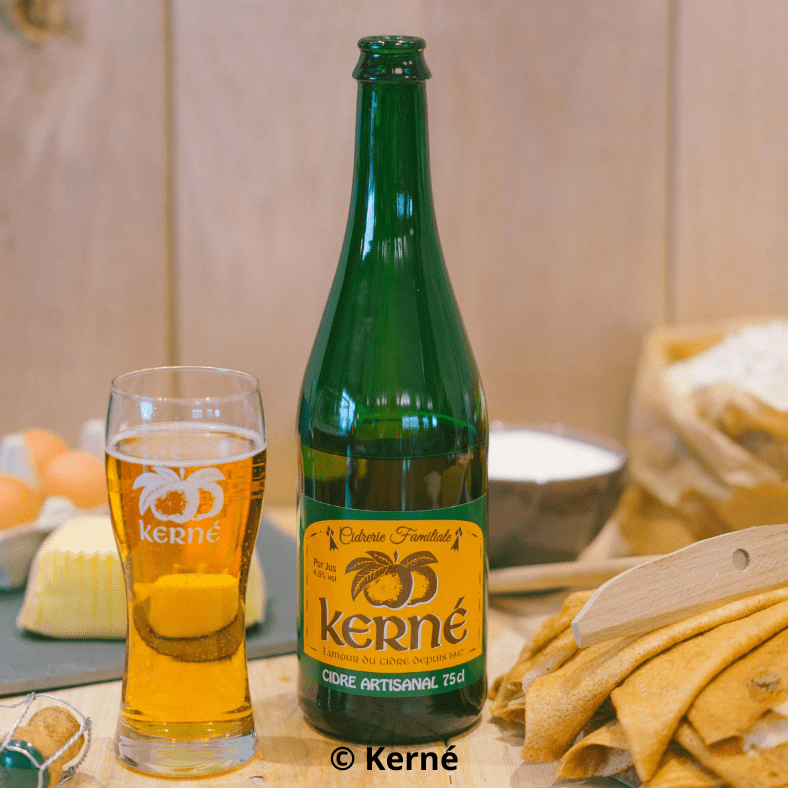 - Cidre Kerné* (75cl) -> médaillé d’argent au concours général agricole 2025 et certifié IGP Bretagne. 1 à 12 bouteilles : 7 € / 13 ou + : 6,5 €