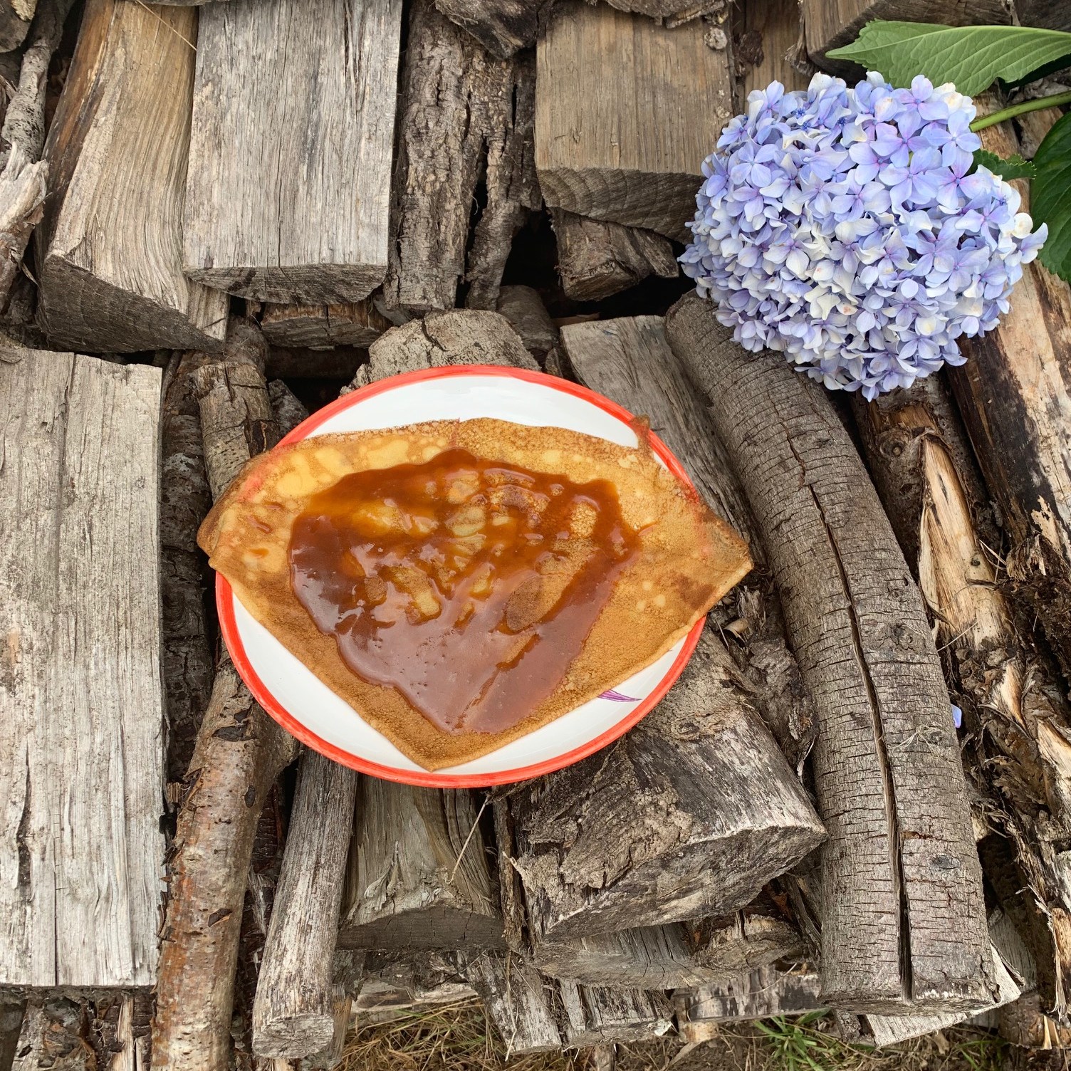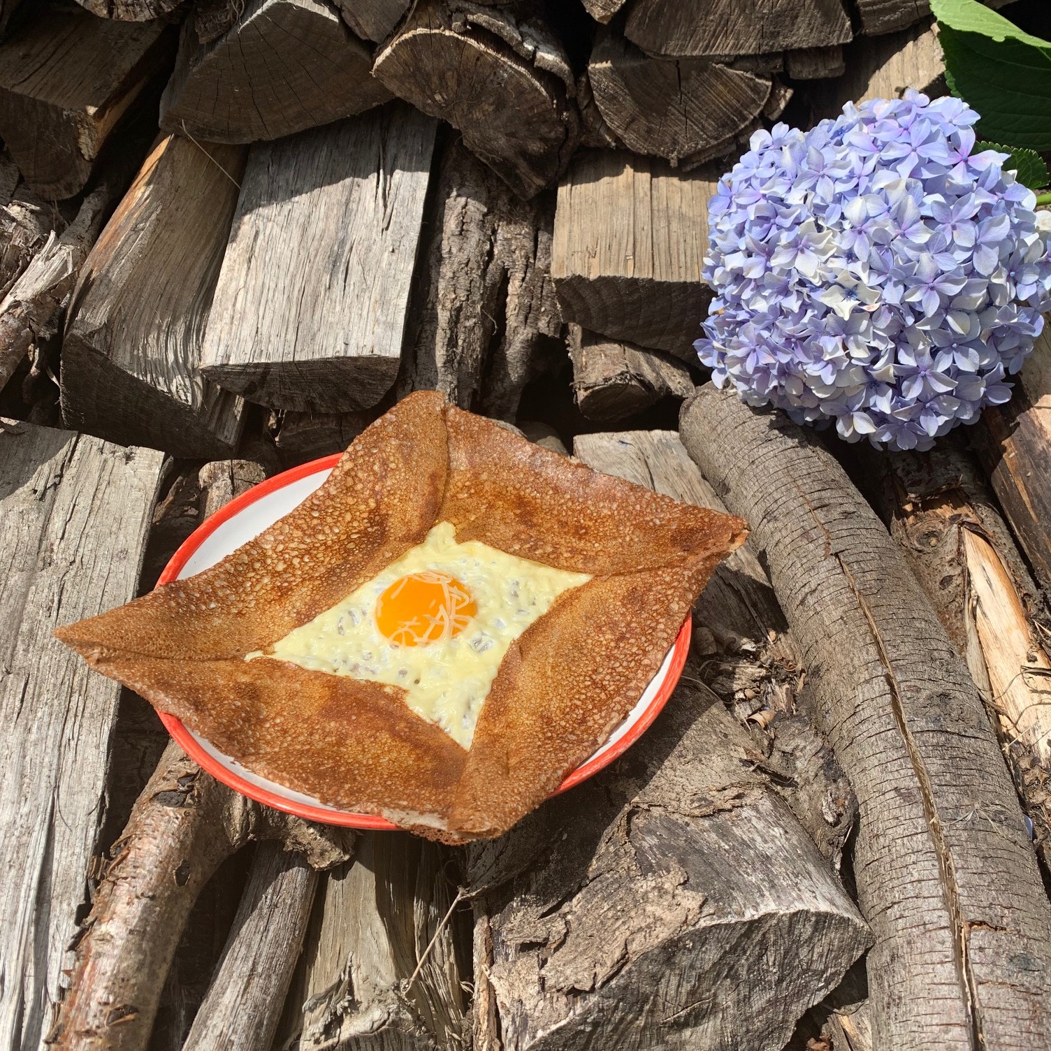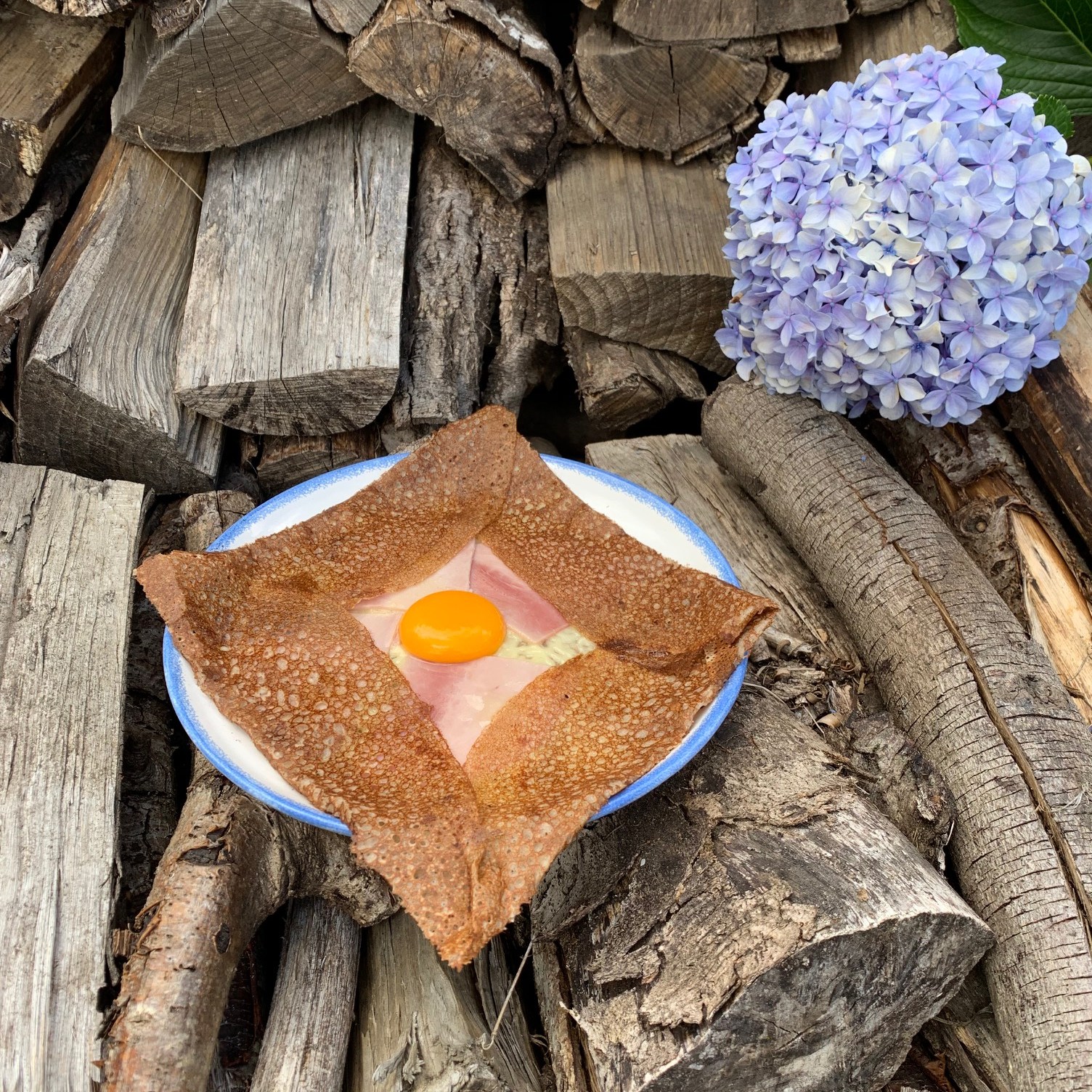 | Garnitures n°1 • Jambon • Emmental • Œuf Garnitures n°2 • Jambon • Emmental • Œuf • Oignons déglacés au cidre maison • Sauce tomate • Crème • Lardons | Garnitures 1 & 2 • Beurre • Sucre • Sauce chocolat maison • Caramel au beurre salé maison • Miel • Confiture • Citron |