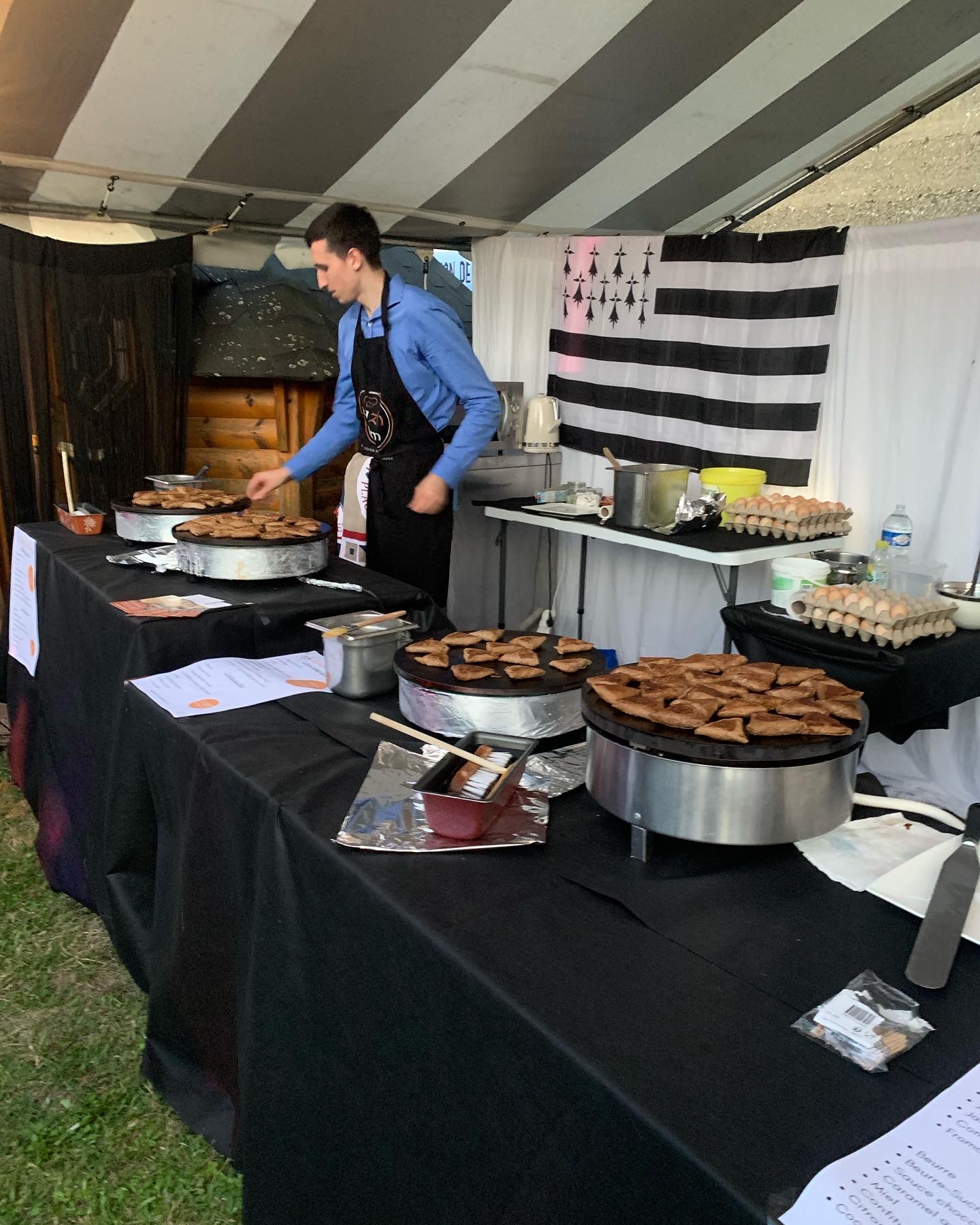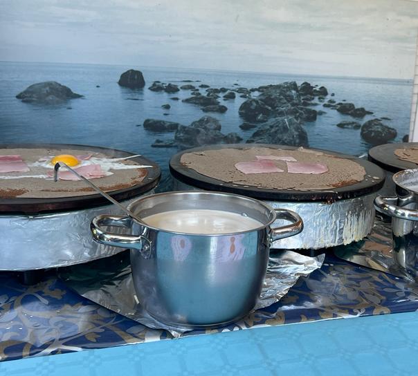 Comme un food truck, le repas se fait sous forme de comptoir. Chaque invité a le choix de la garniture, il compose lui-même sa crêpe. Les crêpes et galettes sont confectionnées devant vous sur des véritables crêpières Bretonnes.